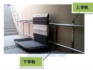 斜挂式輪椅(yi)升降平台主要爲(wei)使用輪椅者提供(gòng)上下樓梯的服務(wu),其一般結構型式(shi)如下圖所示。爲了(le)防止平台傾翻,設(she)2根導軌。斜挂式輪(lun)椅升降平台主要(yào)由工作平台、支承(cheng)架、護欄組成,主體(ti)是鋼結構。工作平(ping)台是升降機的工(gōng)作部分,表面複有(yǒu)防滑材料。平台的(de)3個外向面都安裝(zhuāng)有安全護闆,當平(píng)台運動受阻時,能(néng)使升降機停止運(yùn)動。平台在不使用(yong)時可以向上折疊(dié),以減少占用空間(jian)。平台主要技術參(can)數